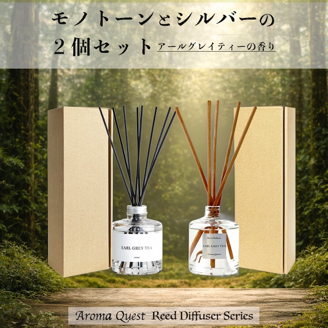 【2個セット】アロマクエスト リードディフューザー アールグレイティーの香り Duo Set 150ml×2本 モノトーン&シルバー エコ包装 ルームフレグランス