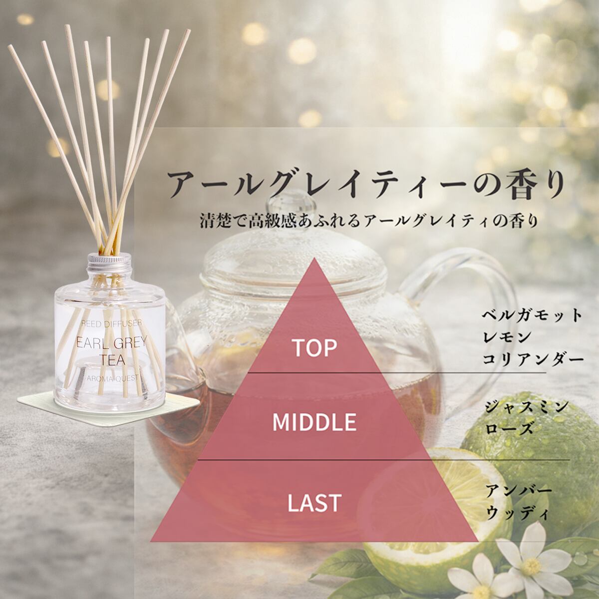 インテリア性の高いリードディフューザーにぴったりの香りです